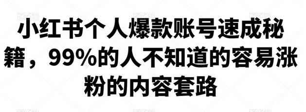 小红书个人爆款账号速成秘籍,99%的人不知道的容易涨粉的内容套路