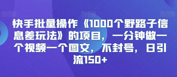 快手批量操作《1000个野路子信息差玩法》的项目,一分钟做一个视频一个图文,不封号,日引流150+【揭秘】