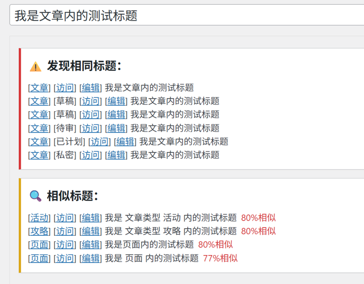 免责声明:本网站的文章部分内容可能来源于网络,仅供大家学习与参考,本站一切资源不代表本站立场,并不代表本站赞同其观点和对其真实性负责,不拥有所有权,不承担相关法律责任。展示内容仅作为学习交流使用,其版权归出版公司或原作者所有,本站不对所涉及的版权问题负责。如原作者认为侵权,请联系我们 youxi@111.com,我们会立即删除文章!蜗牛学社 » wordpress 重复标题检测插件