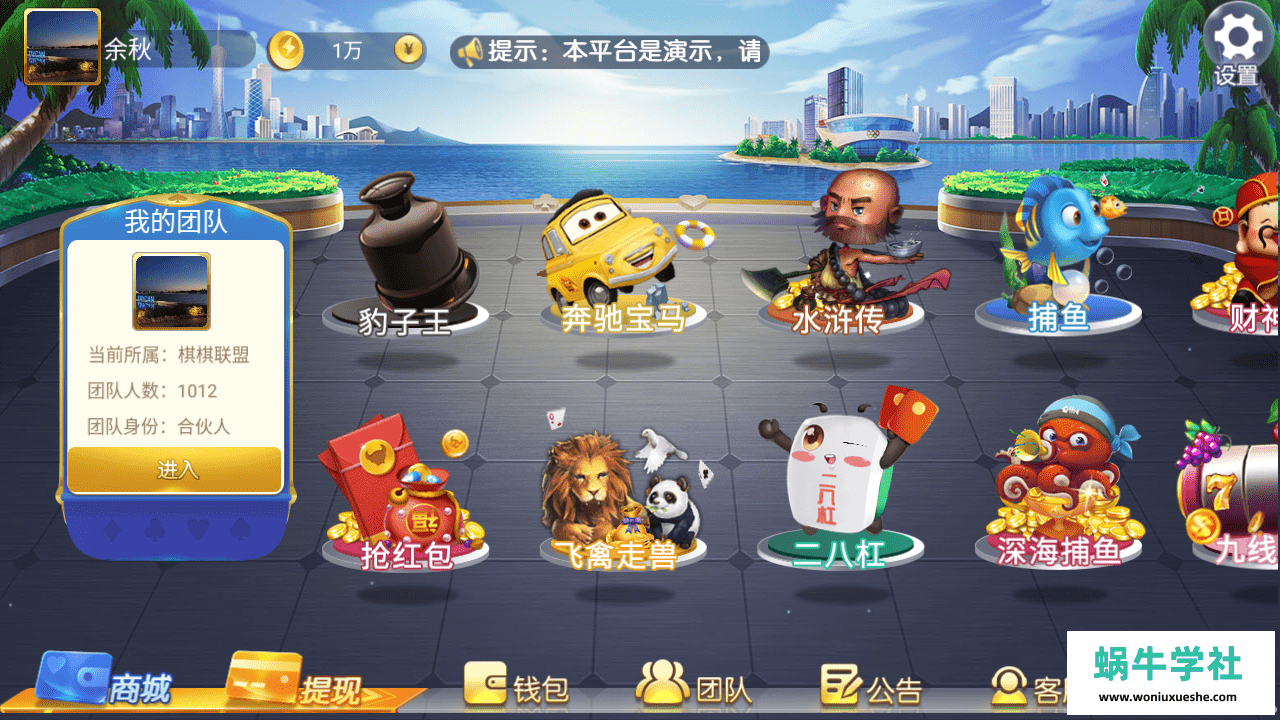 这套带AI智能陪玩机器人,在线充值已对接整合好,金币场的大联盟,其实就是全民代理模式,新玩家首次登录游戏大厅需要绑定上级邀请码。