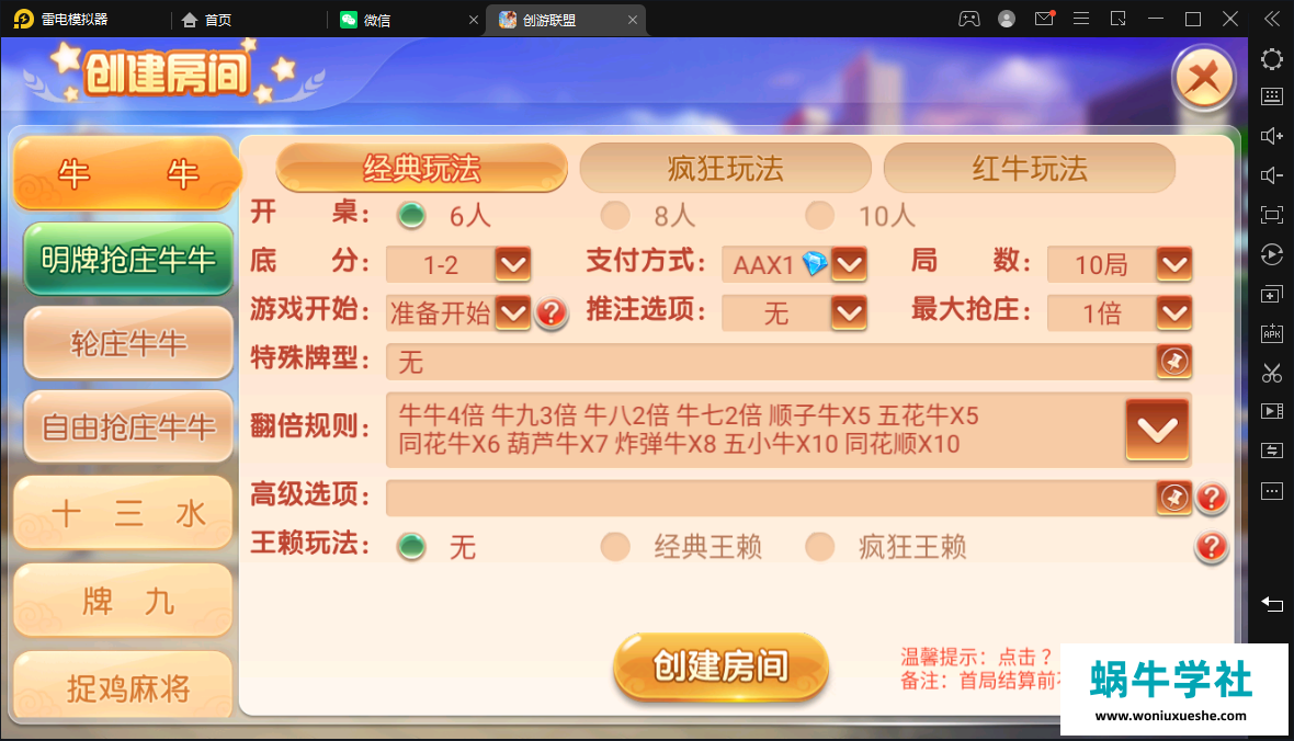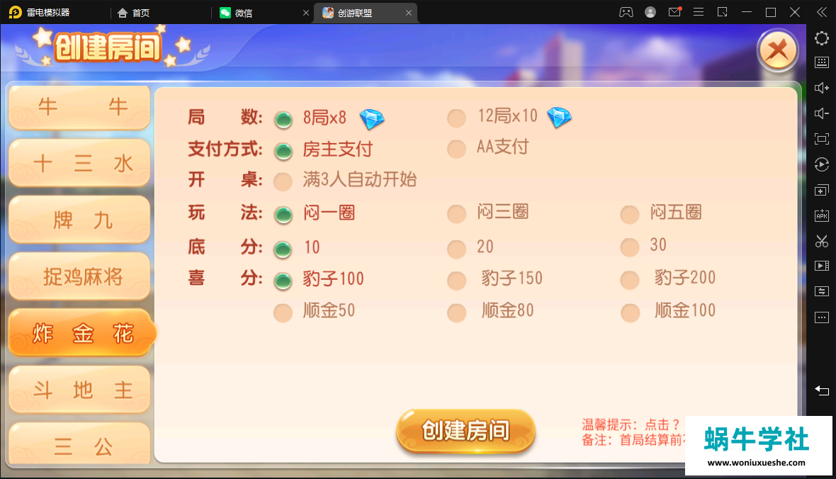子游戏的话有9个:跑得快,斗地主,三公,牛牛,十三水,牌九,捉鸡麻将,炸金花,超级三加一
