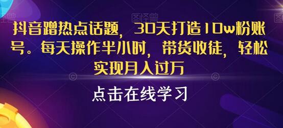 抖音蹭热点话题,30天打造10w粉账号,每天操作半小时,带货收徒,轻松实现月入过万【揭秘】