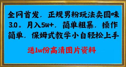 全网首发正规男粉玩法卖圆味3.0,月入5W+,简单粗暴,操作简单,保姆式教学,小白轻松上手