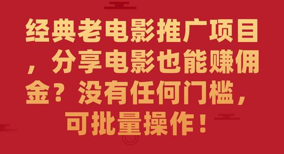 经典老电影推广项目,分享电影也能赚佣金?没有任何门槛,可批量操作 经典怀旧老电影 一部手机就可以操作 操作上几乎没有任何技能要求 受众很广从不缺客户 收益没有上限 下载地址: 内容查看此内容已隐藏升级成VIP会员