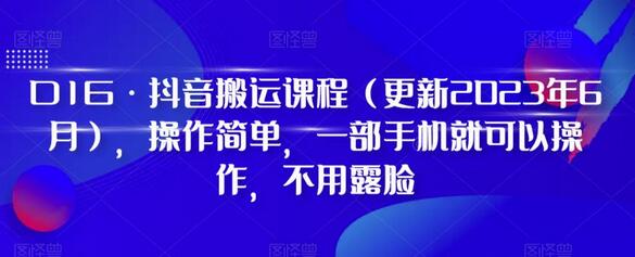 D1G·抖音搬运课程(更新2023年10月),操作简单,一部手机就可以操作,不用露脸