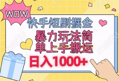 快手短剧掘金,无视粉丝数,暴力玩法简单上手搬运,轻松日入1000+,可矩阵操作【揭秘】