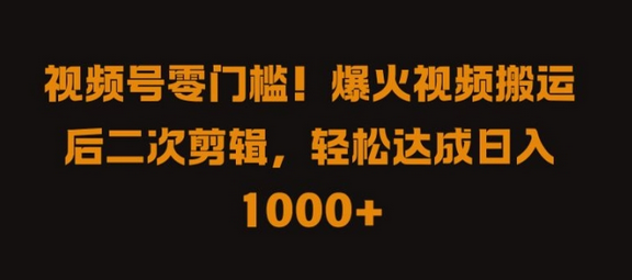 视频号零门槛,爆火视频搬运后二次剪辑,轻松达成日入 1k+【揭秘】