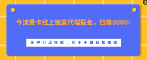 流量卡线上独家代理掘金,日入1k+ ,多种引流模式,新手小白轻松上手【揭秘】