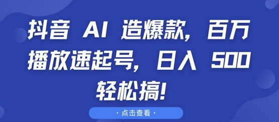 抖音 AI 造爆款,百万播放速起号,日入5张 轻松搞【揭秘】