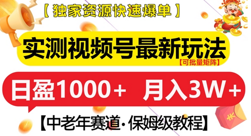 实测视频号最新玩法,中老年赛道,独家资源,月入过W+【揭秘】