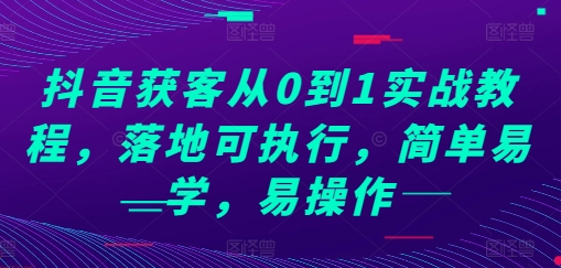抖音获客从0到1实战教程,落地可执行,简单易学,易操作