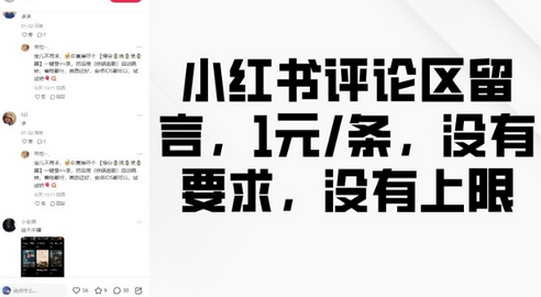 这个标题你没看错就是评论就有收益,而且是去小红书评论,一条评论1块钱。