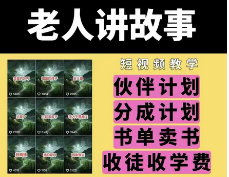 老人讲故事视频教学,民间故事短视频,课程+素材,可做伙伴计划、分成计划,书单卖书、收徒等