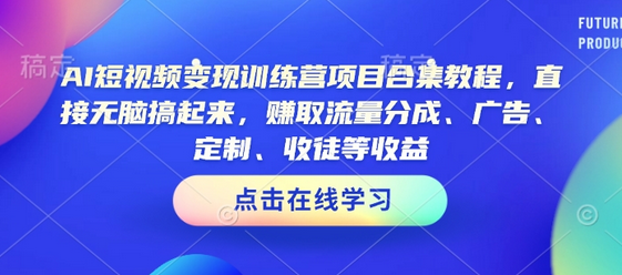 AI短视频变现训练营项目合集教程,直接无脑搞起来,赚取流量分成、广告、定制、收徒等收益