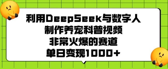 利用DeepSeek与数字人制作养宠科普视频,非常火爆的赛道,单日变现多张