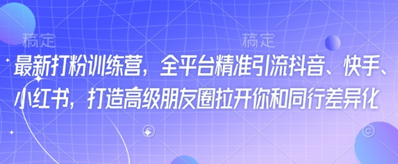 最新打粉训练营,全平台精准引流抖音、快手、小红书,打造高级朋友圈拉开你和同行差异化