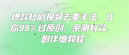 爆款短剧视频去重手法,让你99%过原创,亲测有效,附详细教程