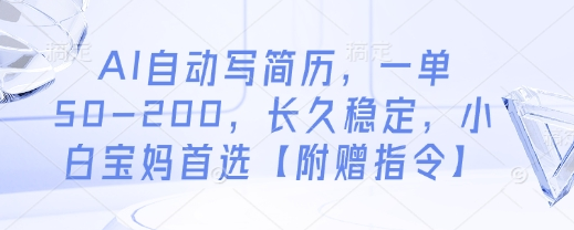 AI自动写简历,一单50-200,长久稳定,小白宝妈首选【附赠指令】
