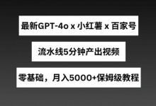 最新GPT4o结合小红书商单+百家号,流水线5分钟产出视频,月入5000+【揭秘】