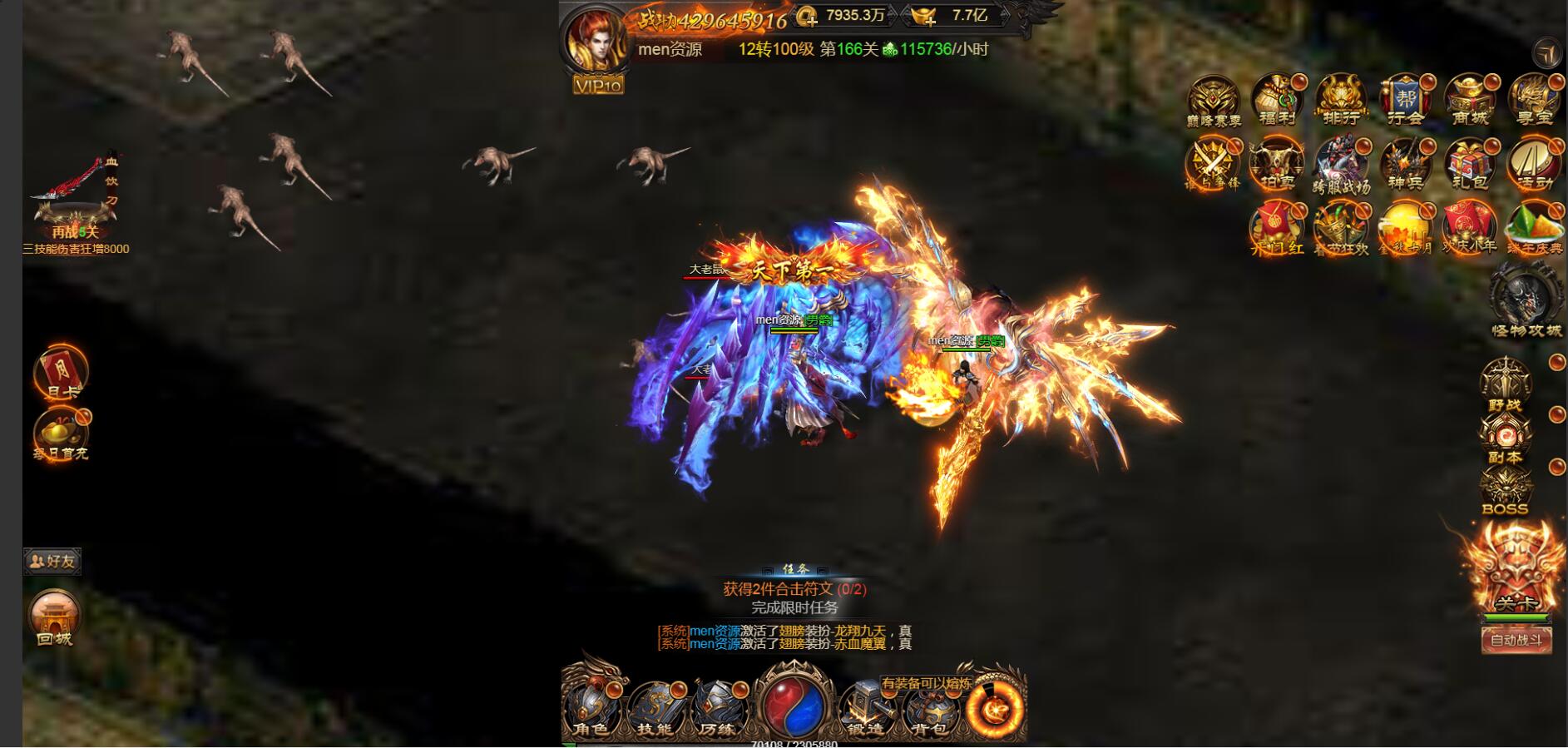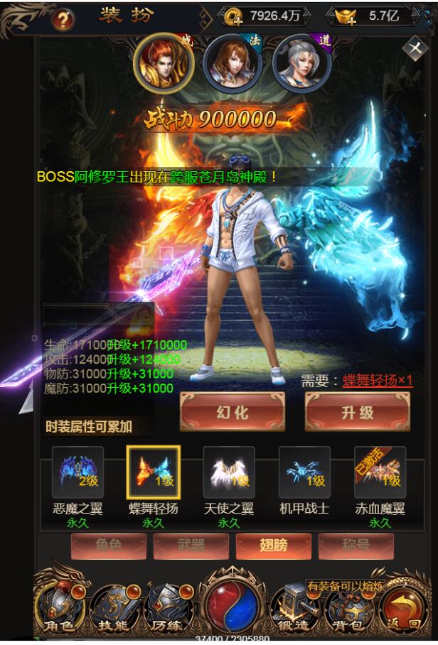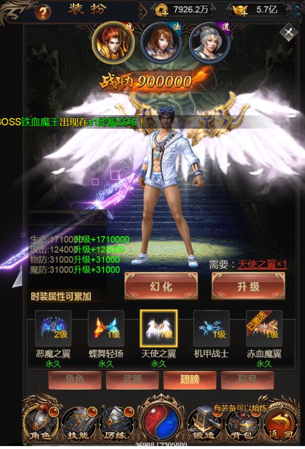 最新耀世雷霆H5换皮版win一键端-炫酷大翅膀- 新称号- 头像功能一键系统特权购买-外网架设教程+gm工具